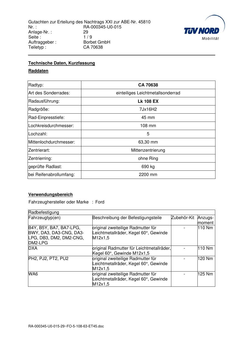 • Stimmt die KBA-Nummer auf der Felge mit diesem Dokument überein?