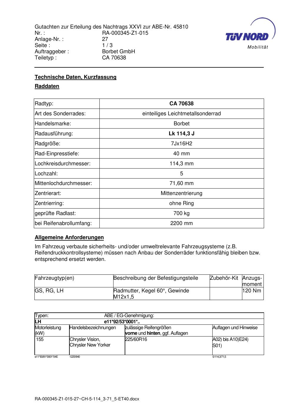 • Stimmt die KBA-Nummer auf der Felge mit diesem Dokument überein?