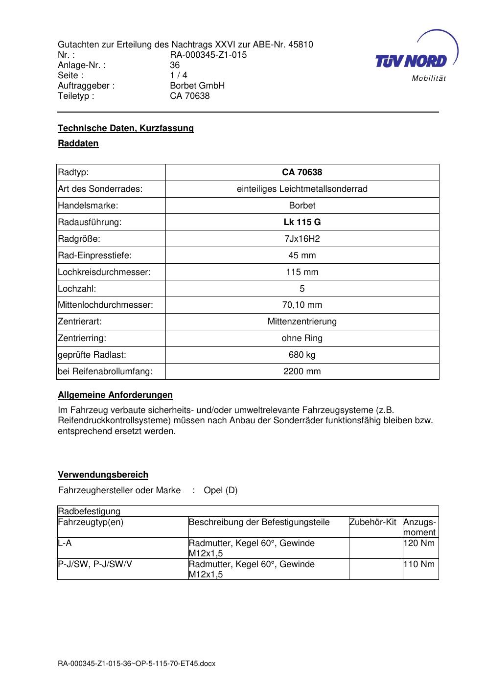 • Stimmt die KBA-Nummer auf der Felge mit diesem Dokument überein?