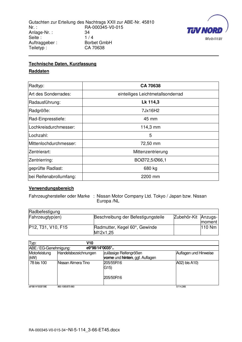 • Stimmt die KBA-Nummer auf der Felge mit diesem Dokument überein?