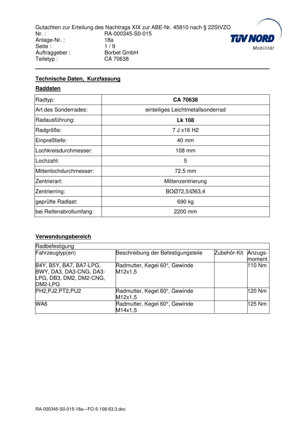 - Stimmt die KBA-Nummer auf der Felge mit diesem Dokument überein?