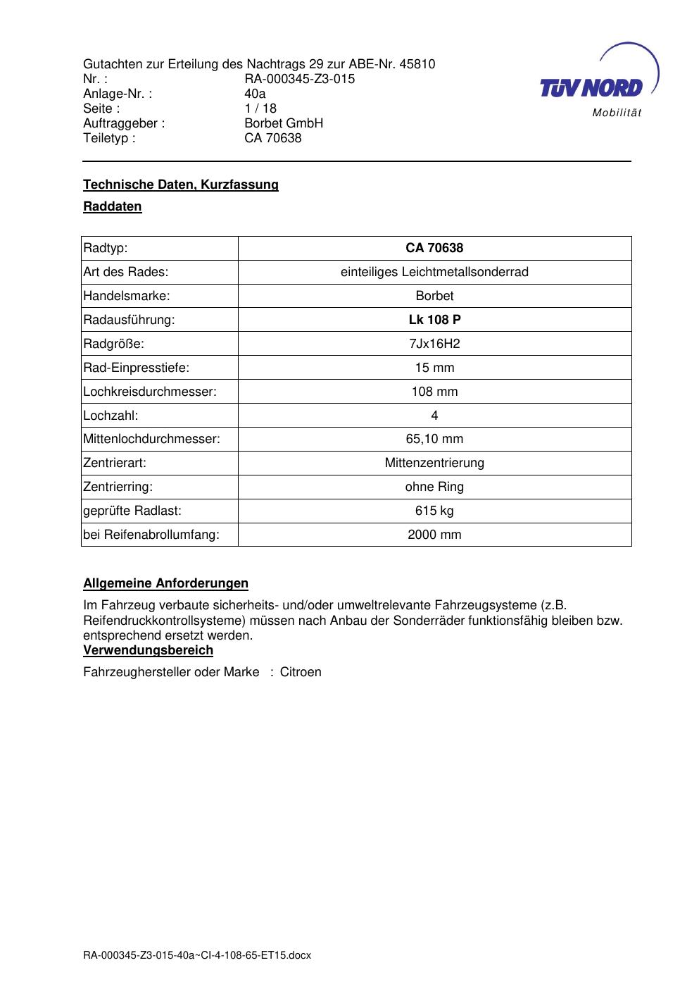 • Stimmt die KBA-Nummer auf der Felge mit diesem Dokument überein?