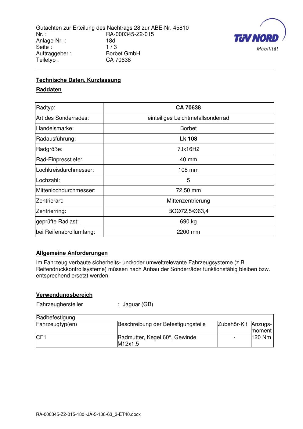 • Stimmt die KBA-Nummer auf der Felge mit diesem Dokument überein?