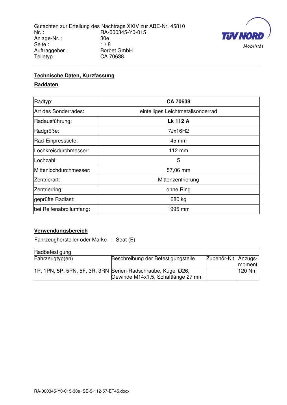 Dieses abe gehört zur Felge Borbet CA 70638 in 7Jx16 ET0 mit KBA 45810. Die Seite ist dafür gedacht, dass du schnell prüfen kannst, ob KBA, Design und Größe zu deiner Felge passen und danach direkt das richtige PDF lädst.