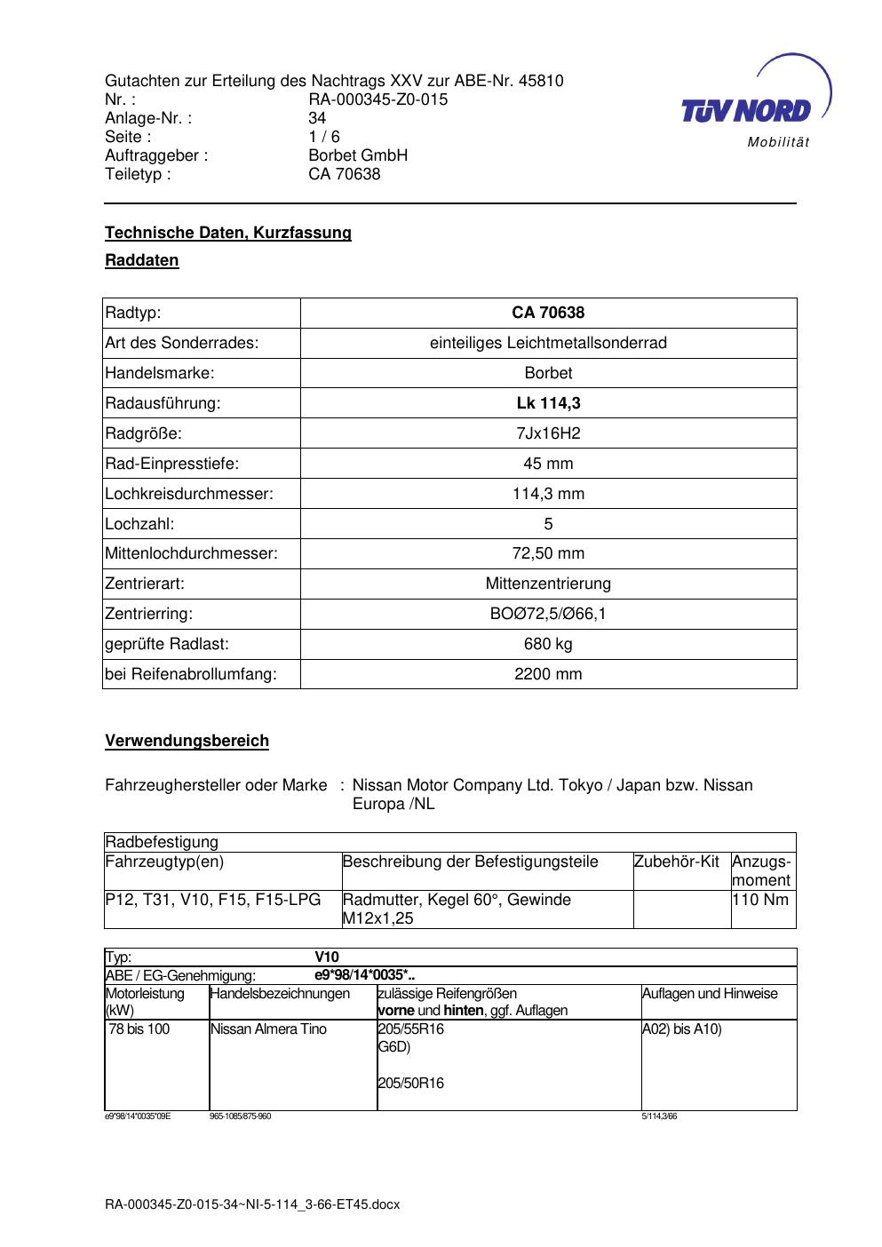• Stimmt die KBA-Nummer auf der Felge mit diesem Dokument überein?