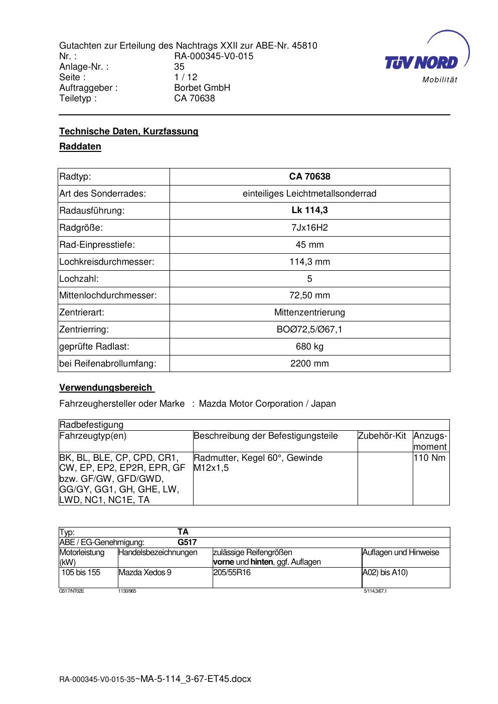 • Stimmt die KBA-Nummer auf der Felge mit diesem Dokument überein?