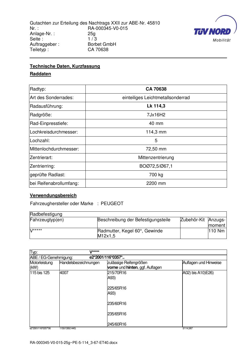 • Stimmt die KBA-Nummer auf der Felge mit diesem Dokument überein?