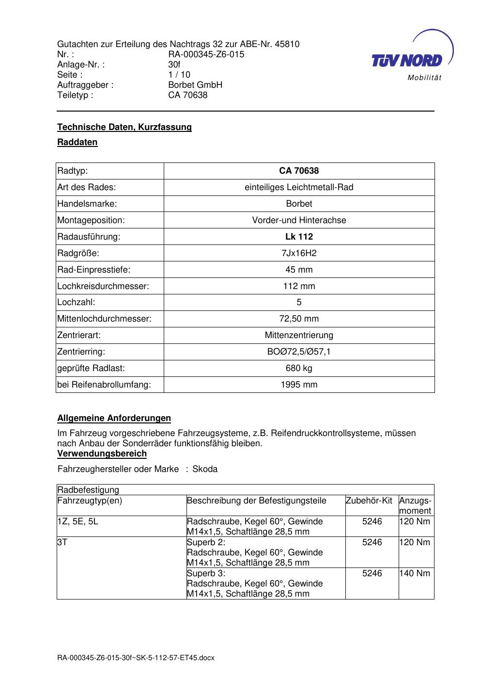 • Stimmt die KBA-Nummer auf der Felge mit diesem Dokument überein?