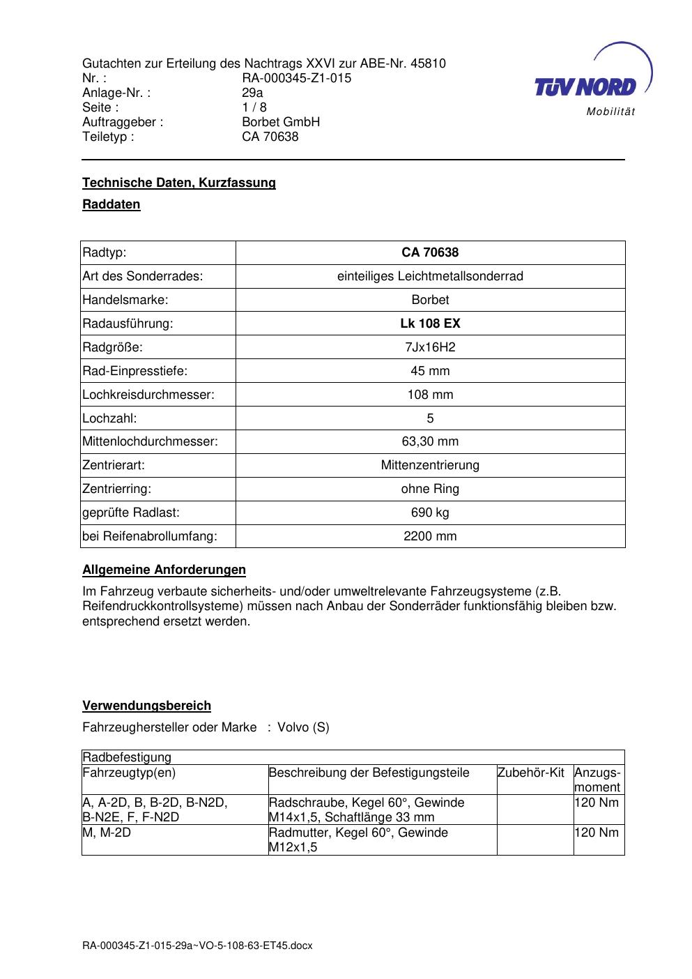 • Stimmt die KBA-Nummer auf der Felge mit diesem Dokument überein?