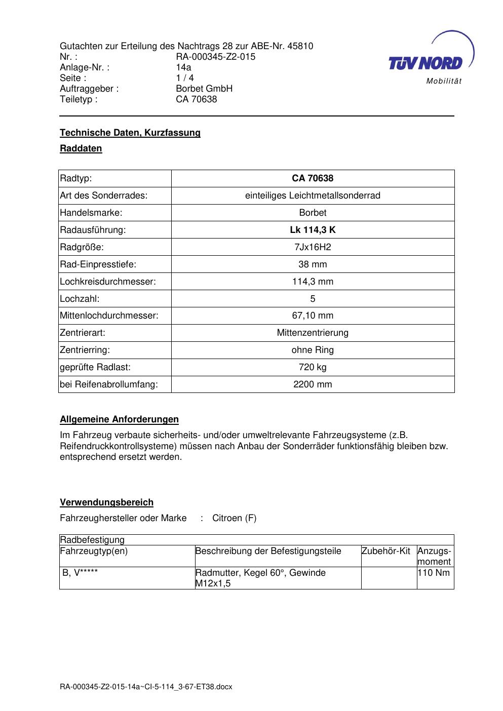 • Stimmt die KBA-Nummer auf der Felge mit diesem Dokument überein?
