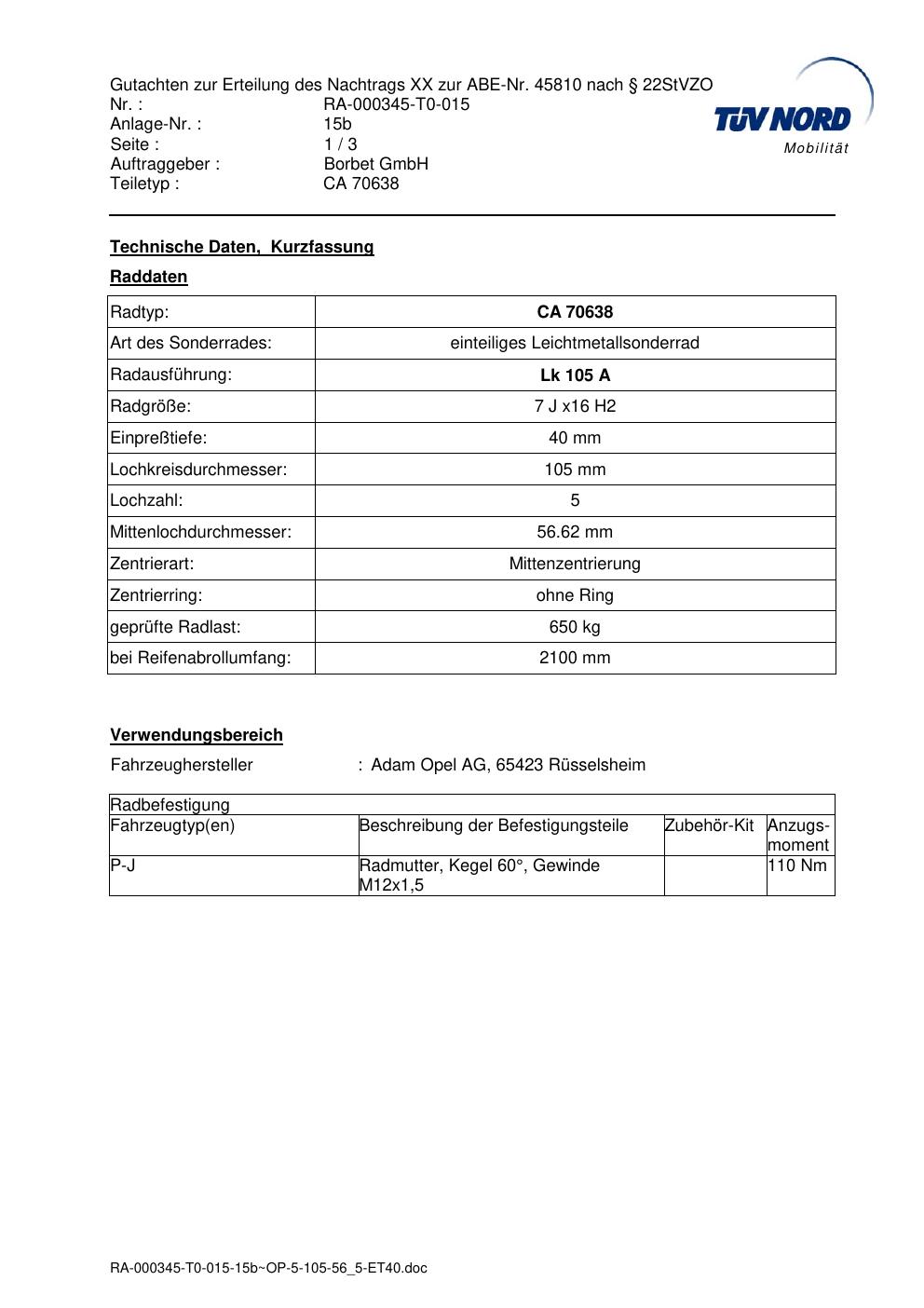 • Stimmt die KBA-Nummer auf der Felge mit diesem Dokument überein?