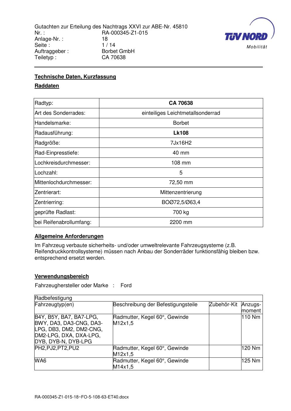 • Stimmt die KBA-Nummer auf der Felge mit diesem Dokument überein?