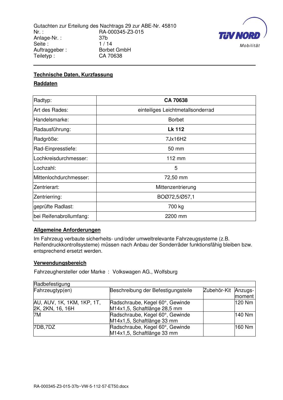 • Stimmt die KBA-Nummer auf der Felge mit diesem Dokument überein?