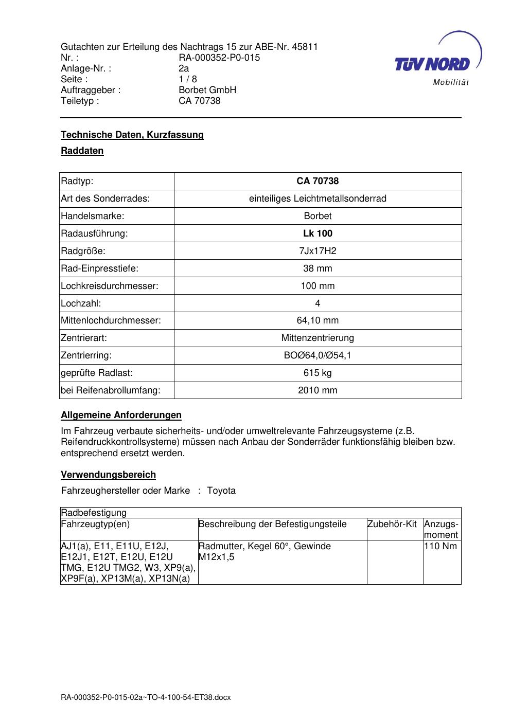 Dieses Gutachten (abe) bezieht sich auf die Alufelge ATS CA 70738 in der Ausführung 7Jx17 ET 0, Mittenloch 0 mm (KBA 45811). Im PDF findest du typischerweise zulässige Reifengrößen, Auflagen/Anbauhinweise und – je nach Dokument – Hinweise zur Eintragung.