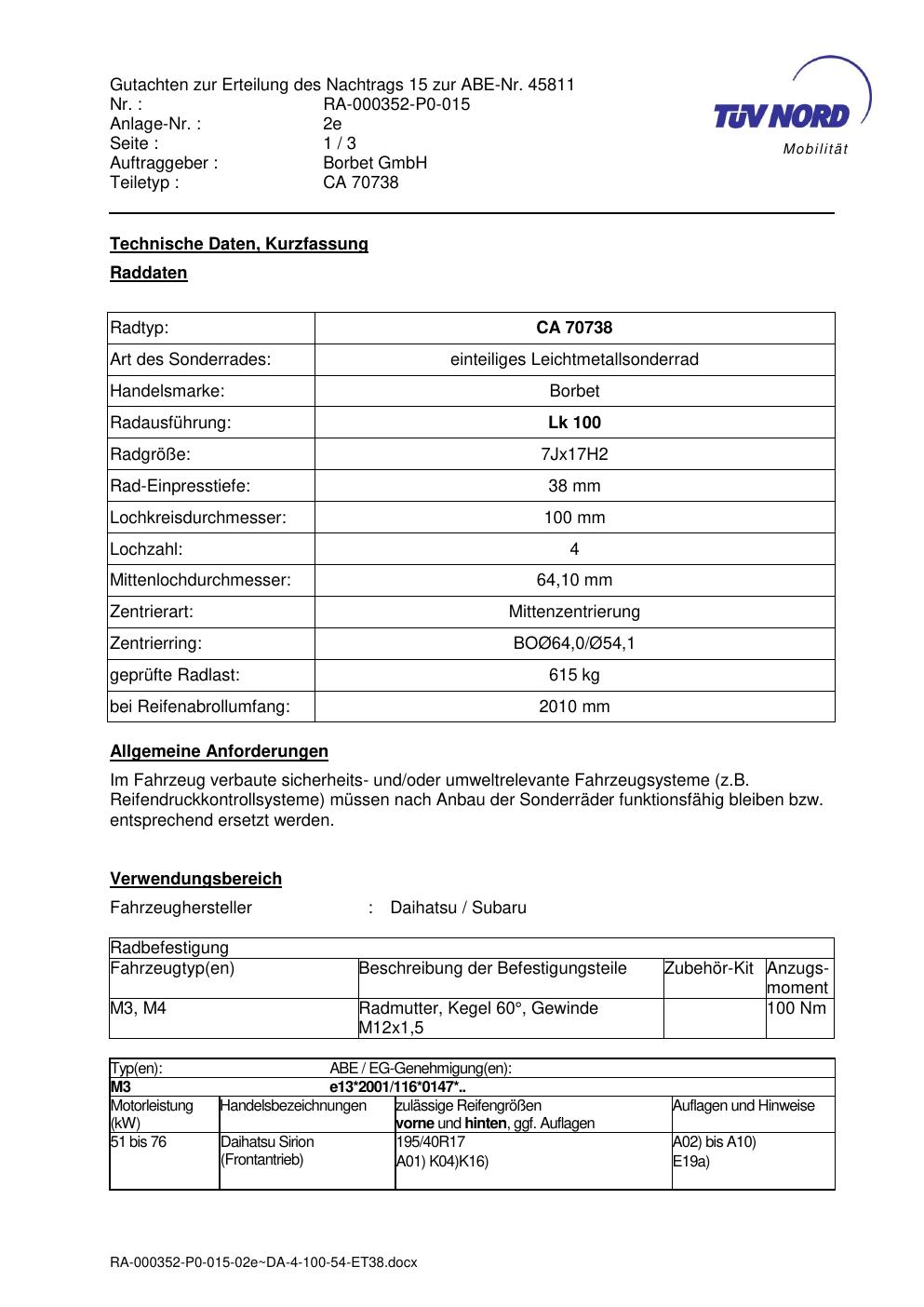Dieses Gutachten (abe) bezieht sich auf die Alufelge ATS CA 70738 in der Ausführung 7Jx17 ET 0, Mittenloch 0 mm (KBA 45811). Im PDF findest du typischerweise zulässige Reifengrößen, Auflagen/Anbauhinweise und – je nach Dokument – Hinweise zur Eintragung.
