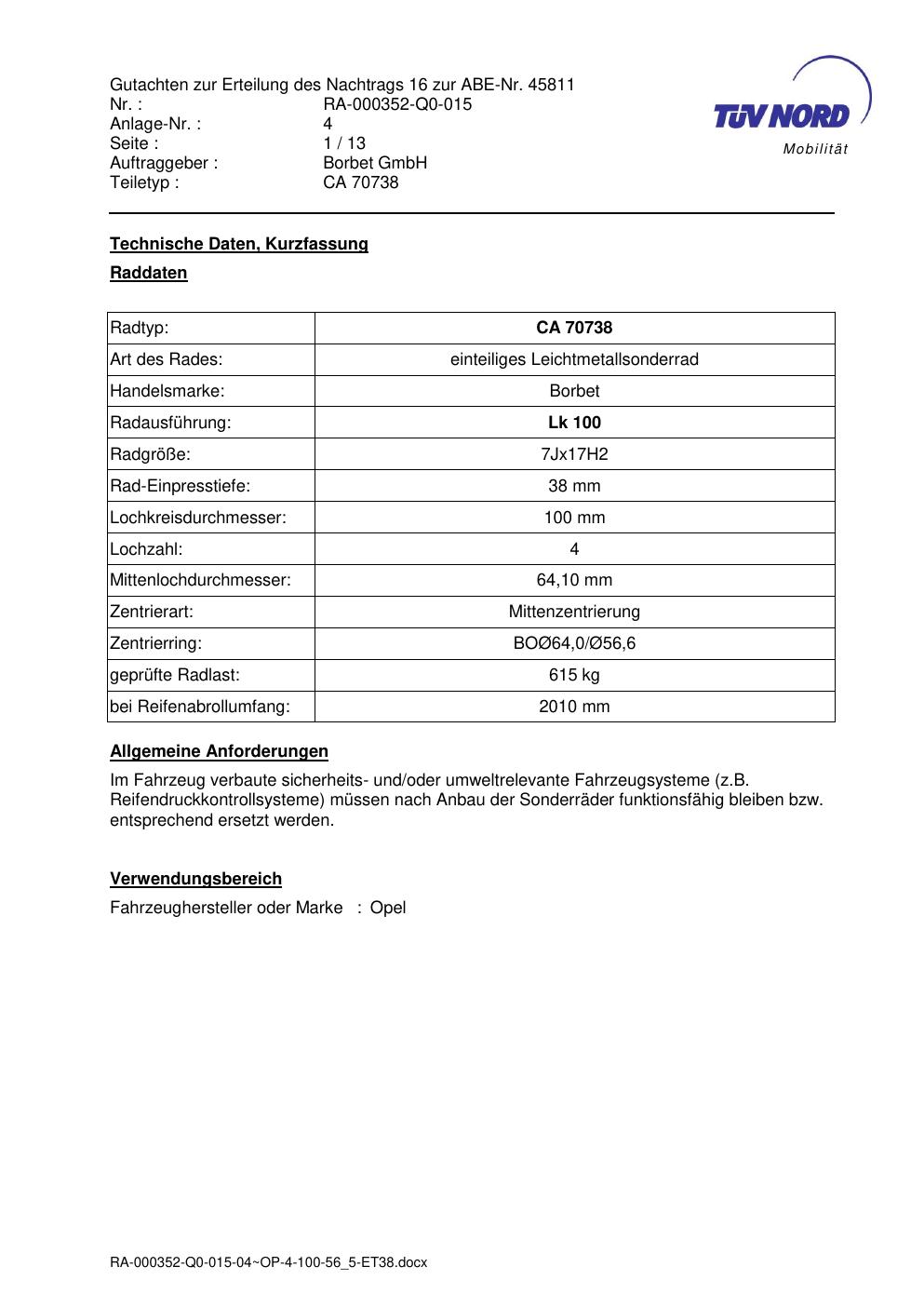 • Stimmt die KBA-Nummer auf der Felge mit diesem Dokument überein?