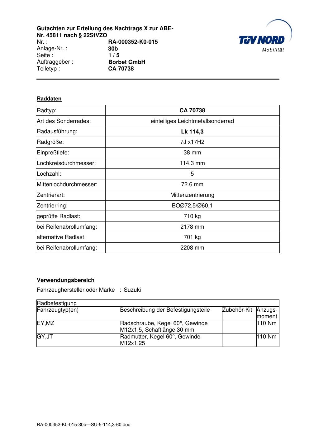 • Stimmt die KBA-Nummer auf der Felge mit diesem Dokument überein?