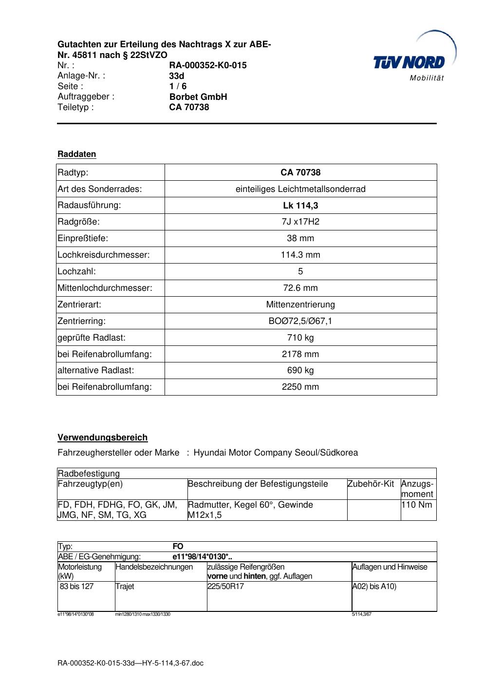 • Stimmt die KBA-Nummer auf der Felge mit diesem Dokument überein?