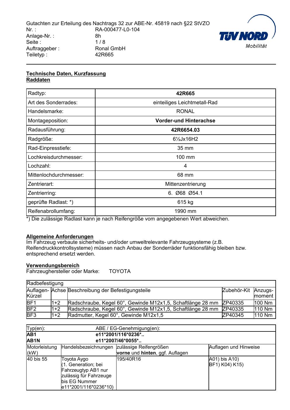 Dieses Gutachten (abe) bezieht sich auf die Alufelge ATS 42R665 in der Ausführung ET 0, Mittenloch 0 mm (KBA 45819). Im PDF findest du typischerweise zulässige Reifengrößen, Auflagen/Anbauhinweise und – je nach Dokument – Hinweise zur Eintragung.