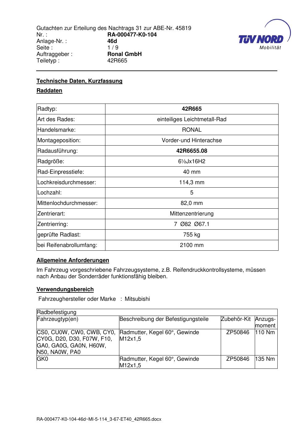 • Stimmt die KBA-Nummer auf der Felge mit diesem Dokument überein?