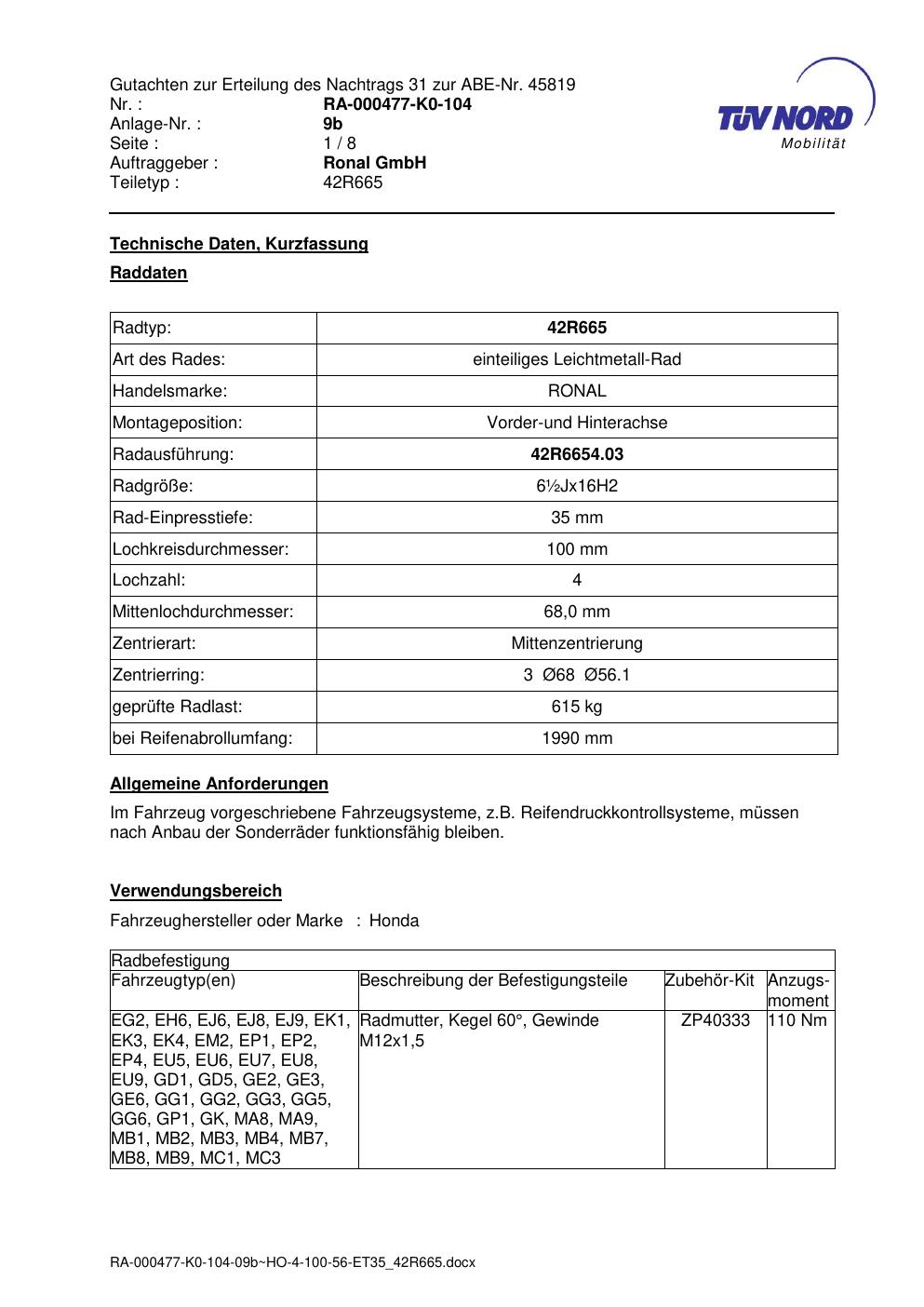 Dieses abe der Marke Ronal stammt vom jeweiligen Hersteller, Importeur oder einer Prüforganisation.