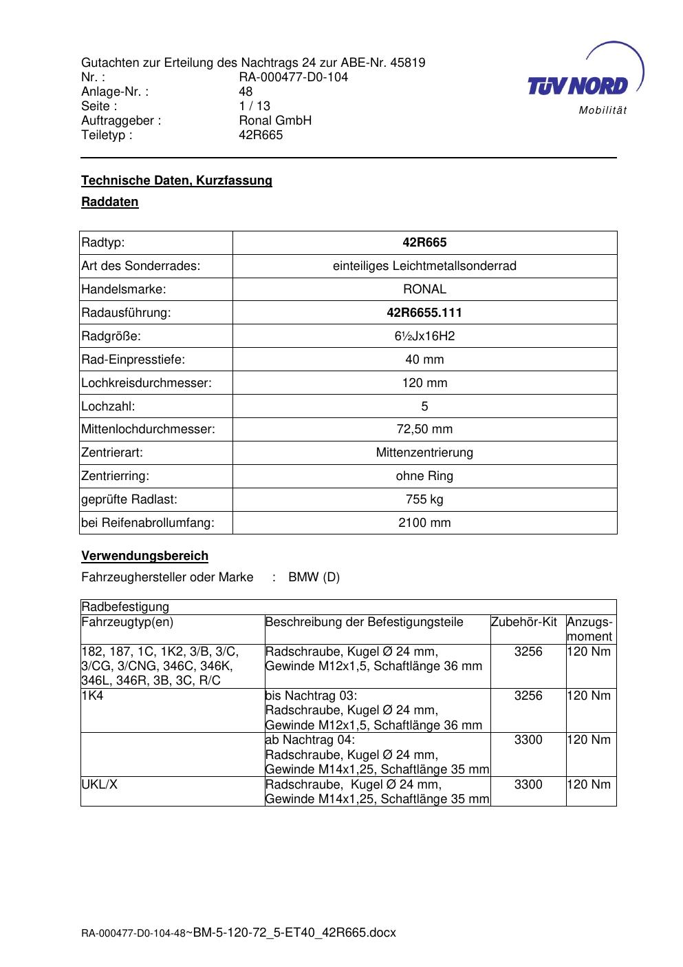 • Stimmt die KBA-Nummer auf der Felge mit diesem Dokument überein?