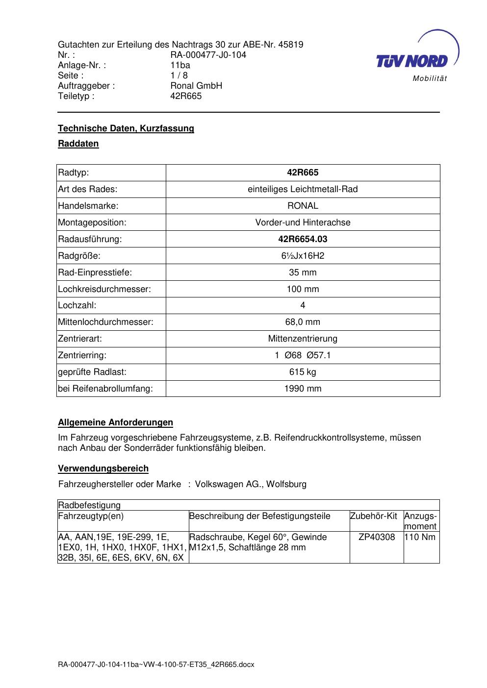 • Stimmt die KBA-Nummer auf der Felge mit diesem Dokument überein?