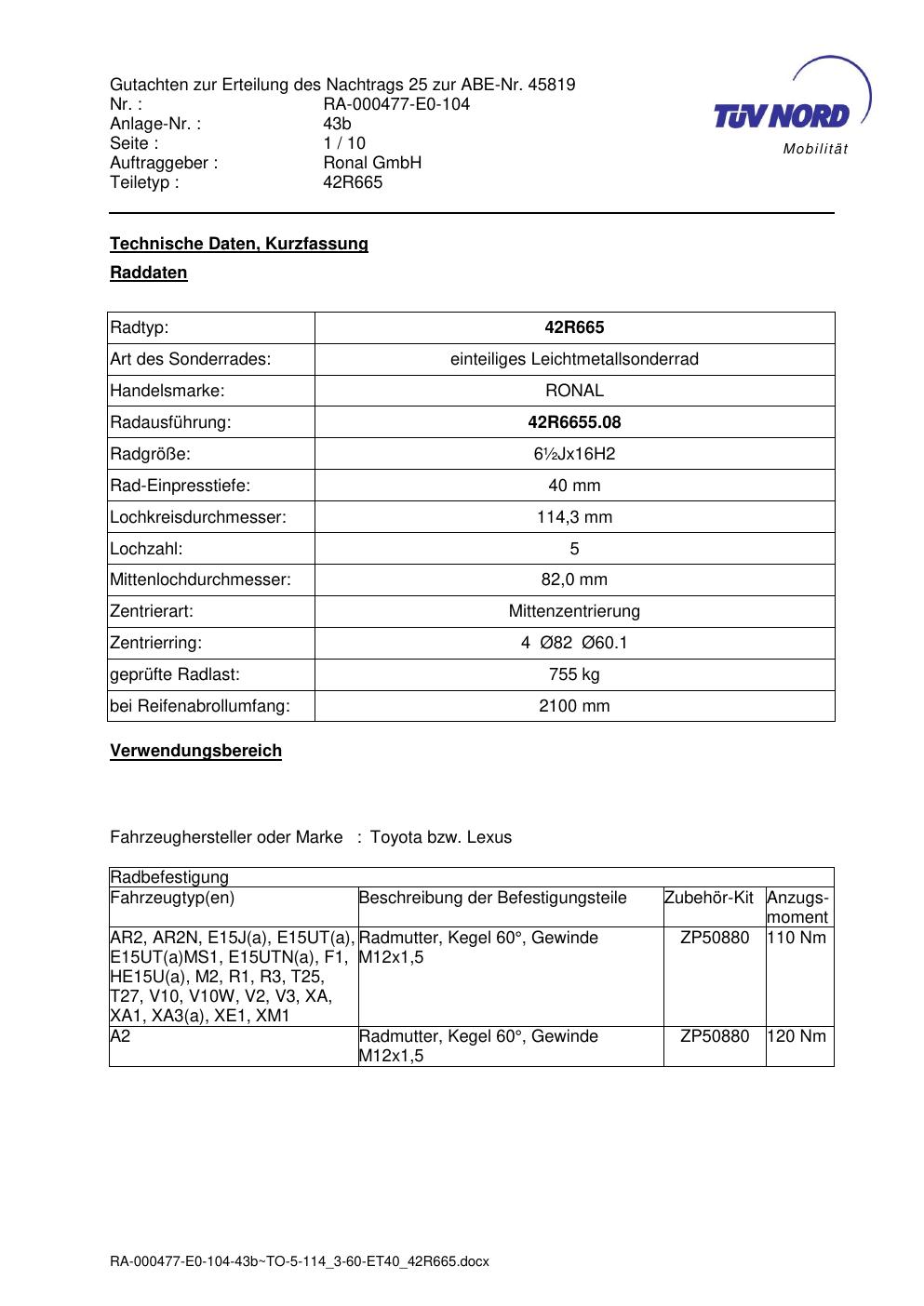 Dieses abe gehört zur Felge Ronal 42R665 in ET0 mit KBA 45819. Die Seite ist dafür gedacht, dass du schnell prüfen kannst, ob KBA, Design und Größe zu deiner Felge passen und danach direkt das richtige PDF lädst.