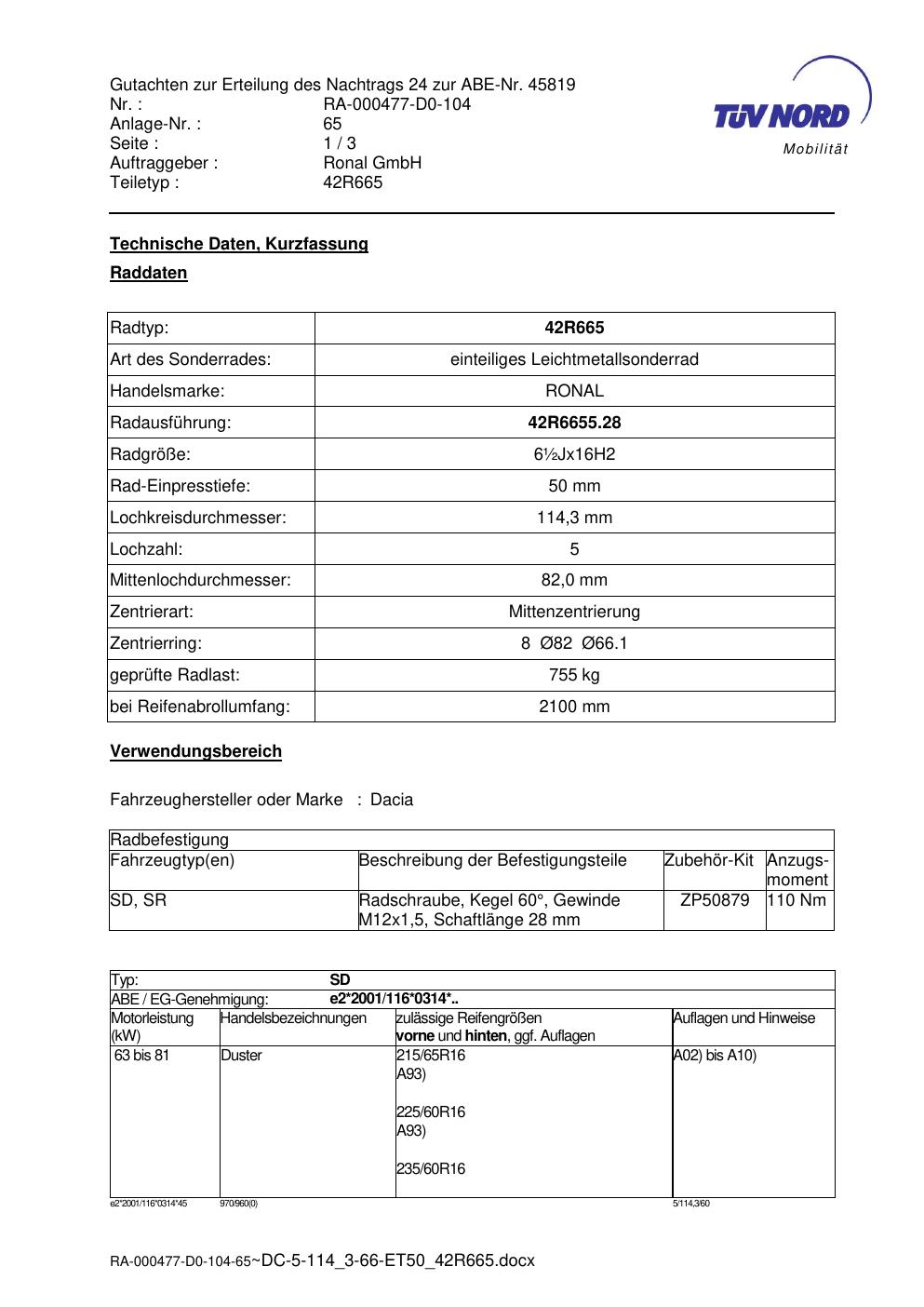 • Stimmt die KBA-Nummer auf der Felge mit diesem Dokument überein?