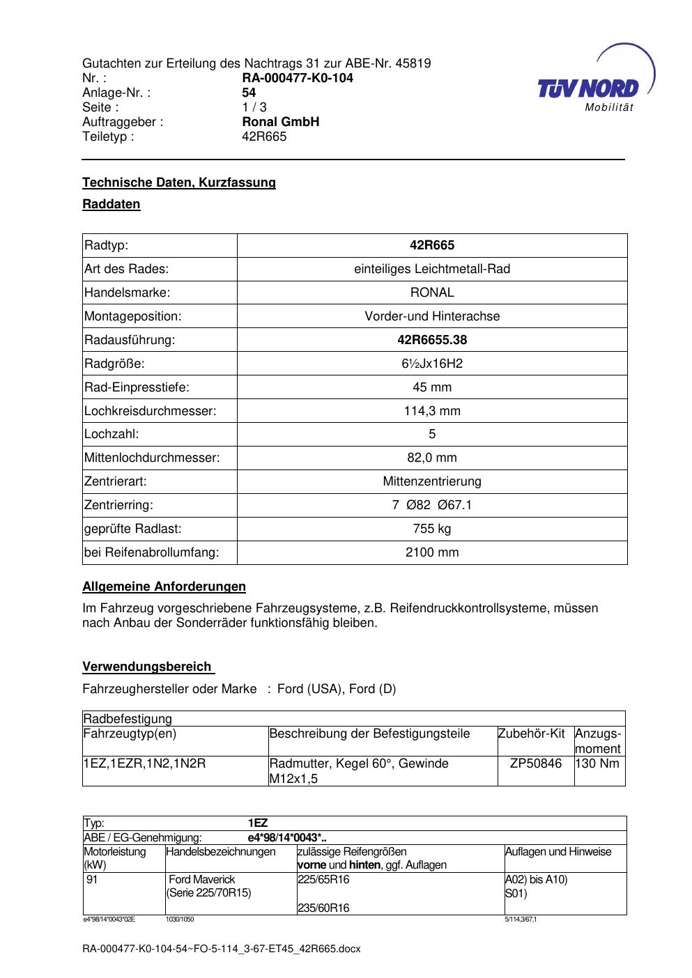 • Stimmt die KBA-Nummer auf der Felge mit diesem Dokument überein?