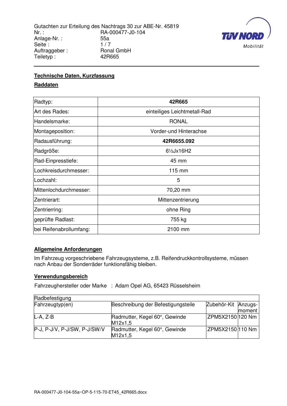 • Stimmt die KBA-Nummer auf der Felge mit diesem Dokument überein?