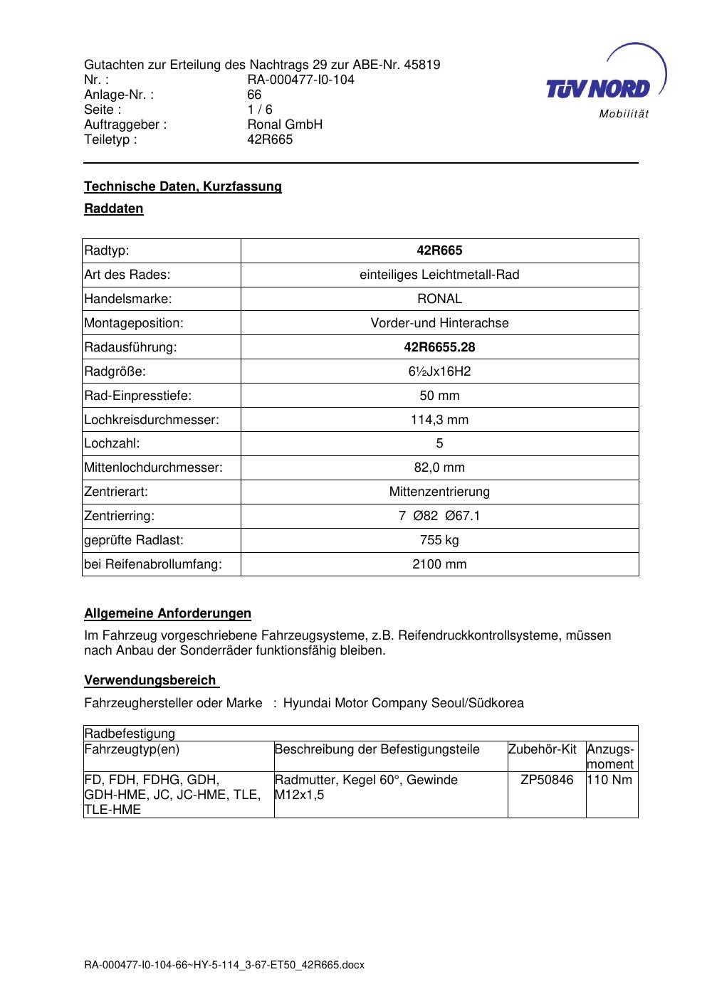 • Stimmt die KBA-Nummer auf der Felge mit diesem Dokument überein?
