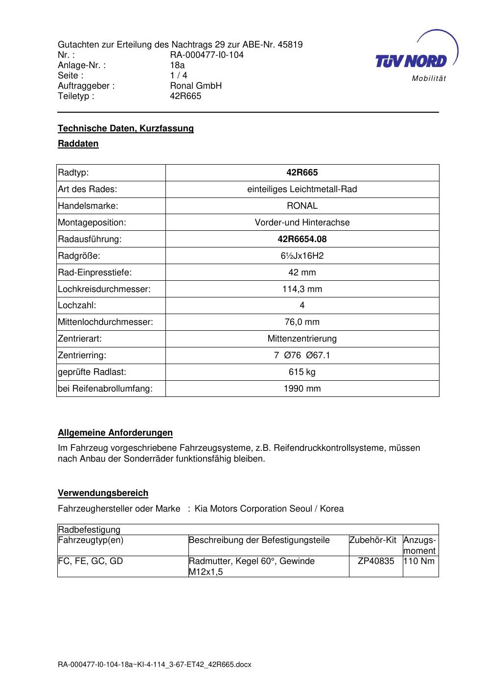 • Stimmt die KBA-Nummer auf der Felge mit diesem Dokument überein?