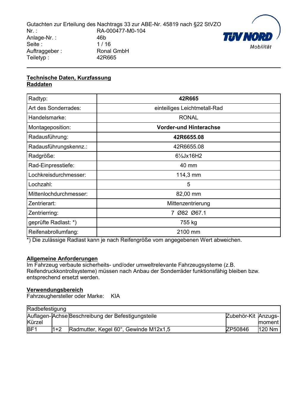 • Stimmt die KBA-Nummer auf der Felge mit diesem Dokument überein?