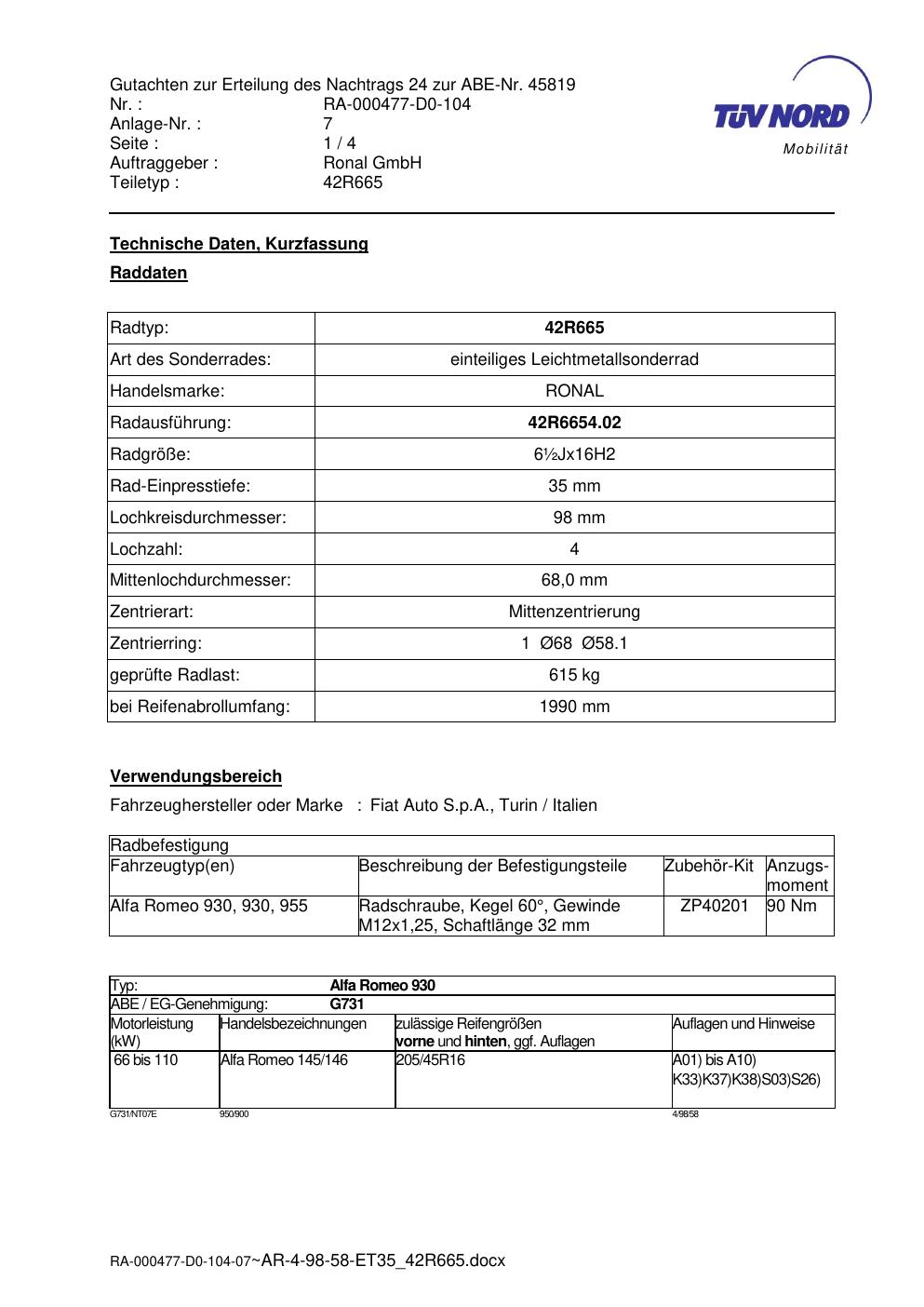 • Stimmt die KBA-Nummer auf der Felge mit diesem Dokument überein?