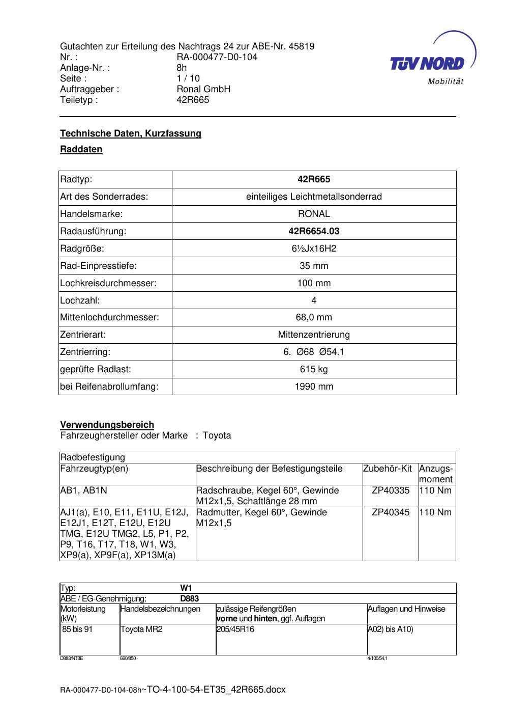 • Stimmt die KBA-Nummer auf der Felge mit diesem Dokument überein?