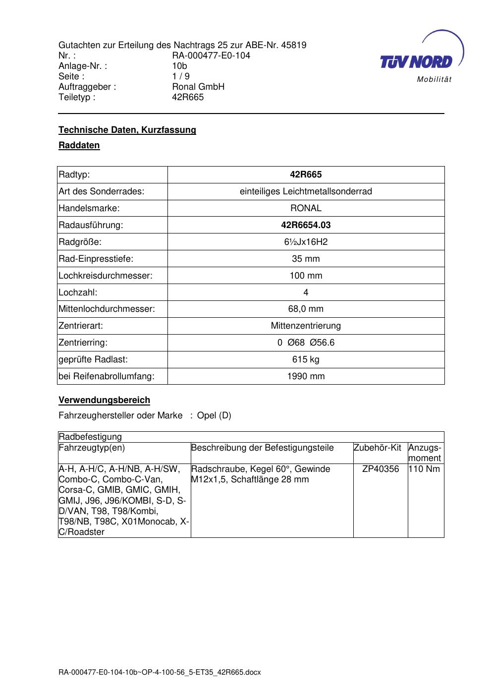 Dieses abe gehört zur Felge Ronal 42R665 in ET0 mit KBA 45819. Die Seite ist dafür gedacht, dass du schnell prüfen kannst, ob KBA, Design und Größe zu deiner Felge passen und danach direkt das richtige PDF lädst.