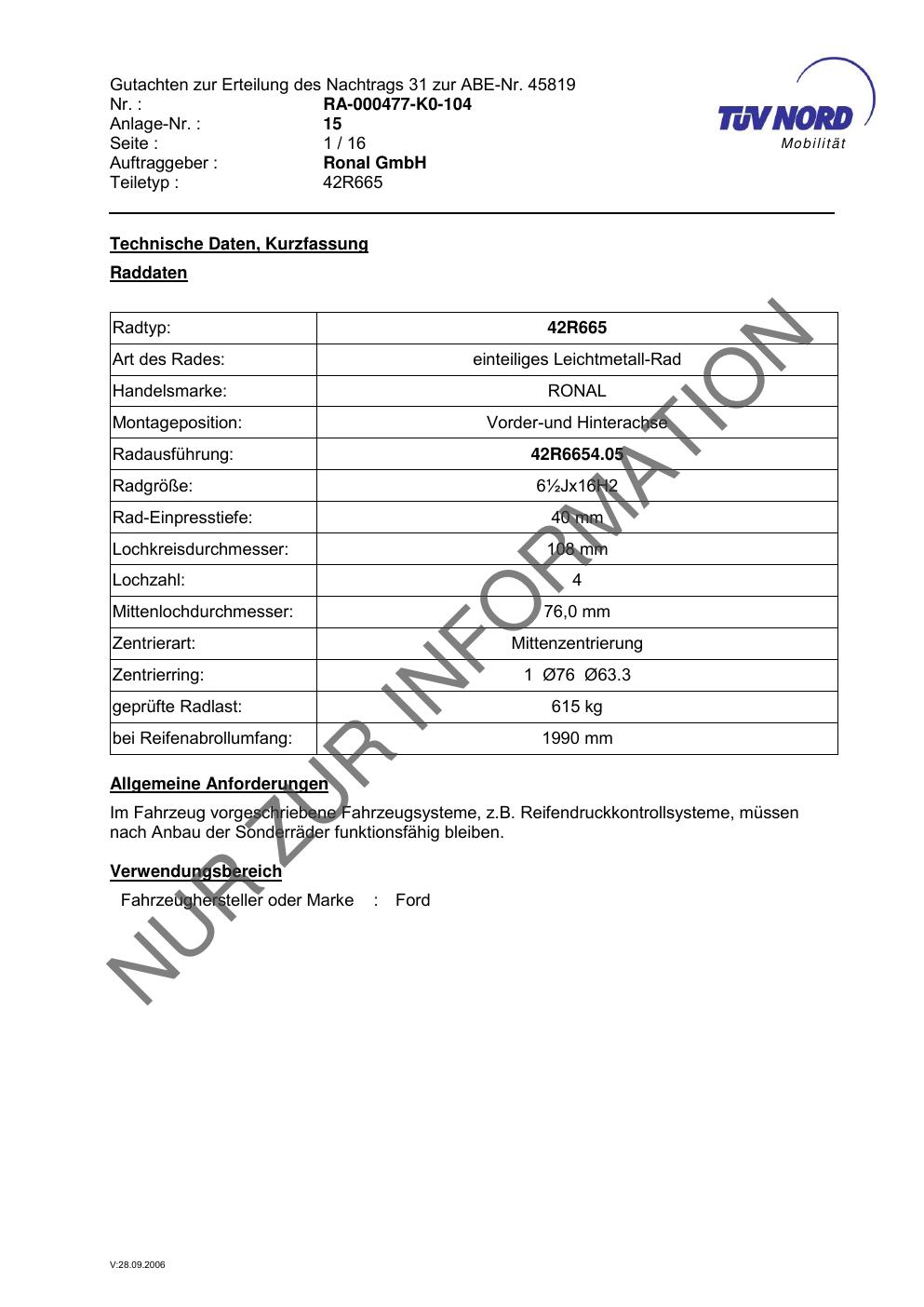 • Stimmt die KBA-Nummer auf der Felge mit diesem Dokument überein?