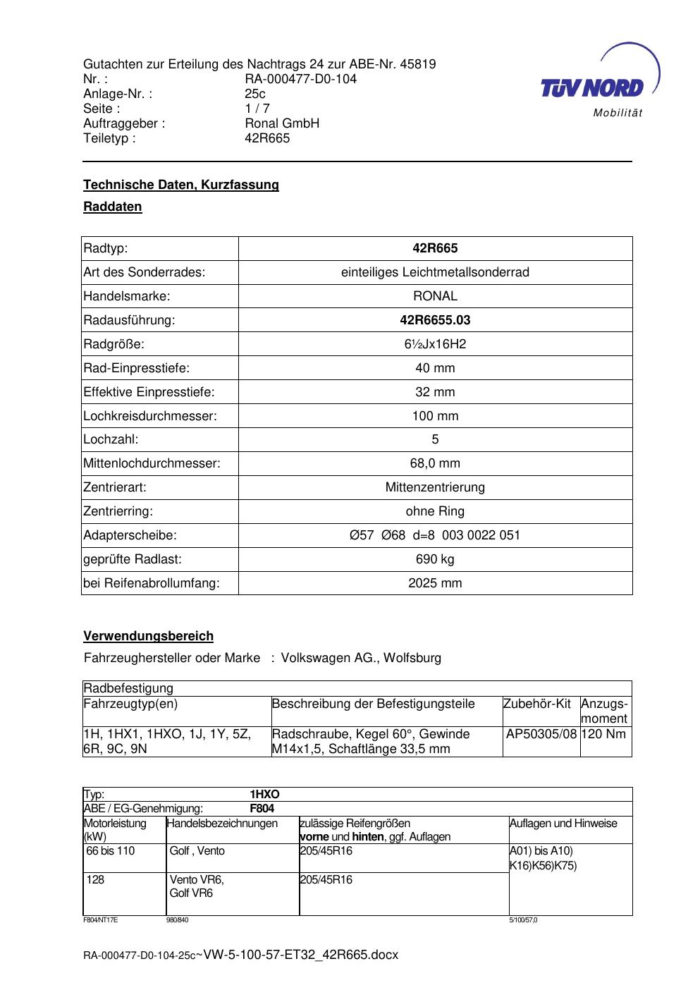 • Stimmt die KBA-Nummer auf der Felge mit diesem Dokument überein?