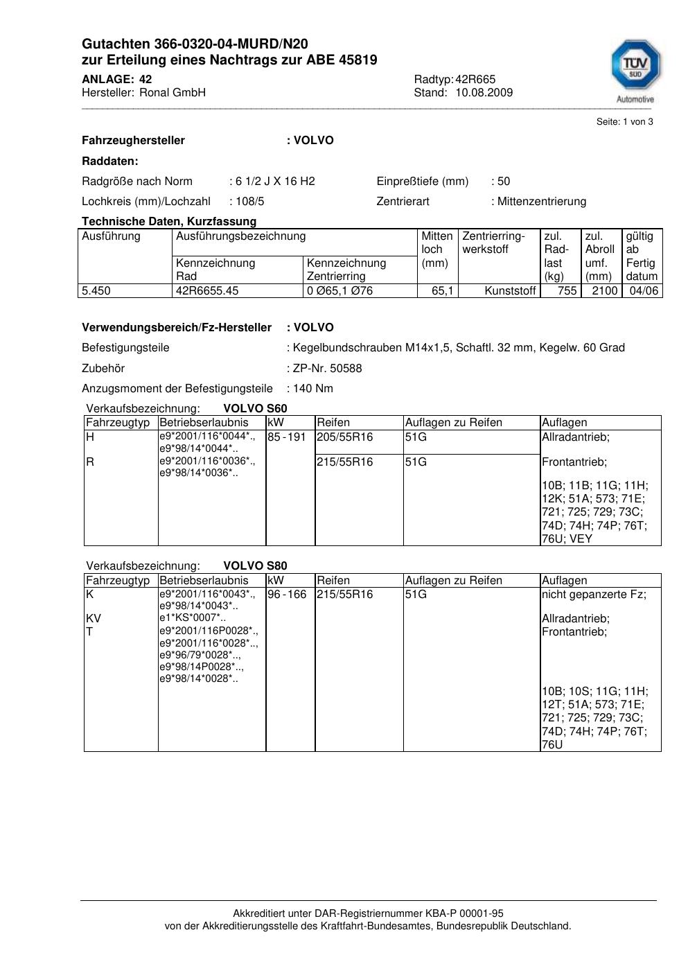 Felgengutachten / abe für Alufelgen Ronal 42R665 (2Jx16 ET 0, Mittenloch 0 mm) mit KBA 45819 (Zertifikatsnummer 45819). Hier kostenlos als PDF herunterladen. Der Download-Link ist 24 Stunden gültig und kann bis zu zwei Mal verwendet werden.