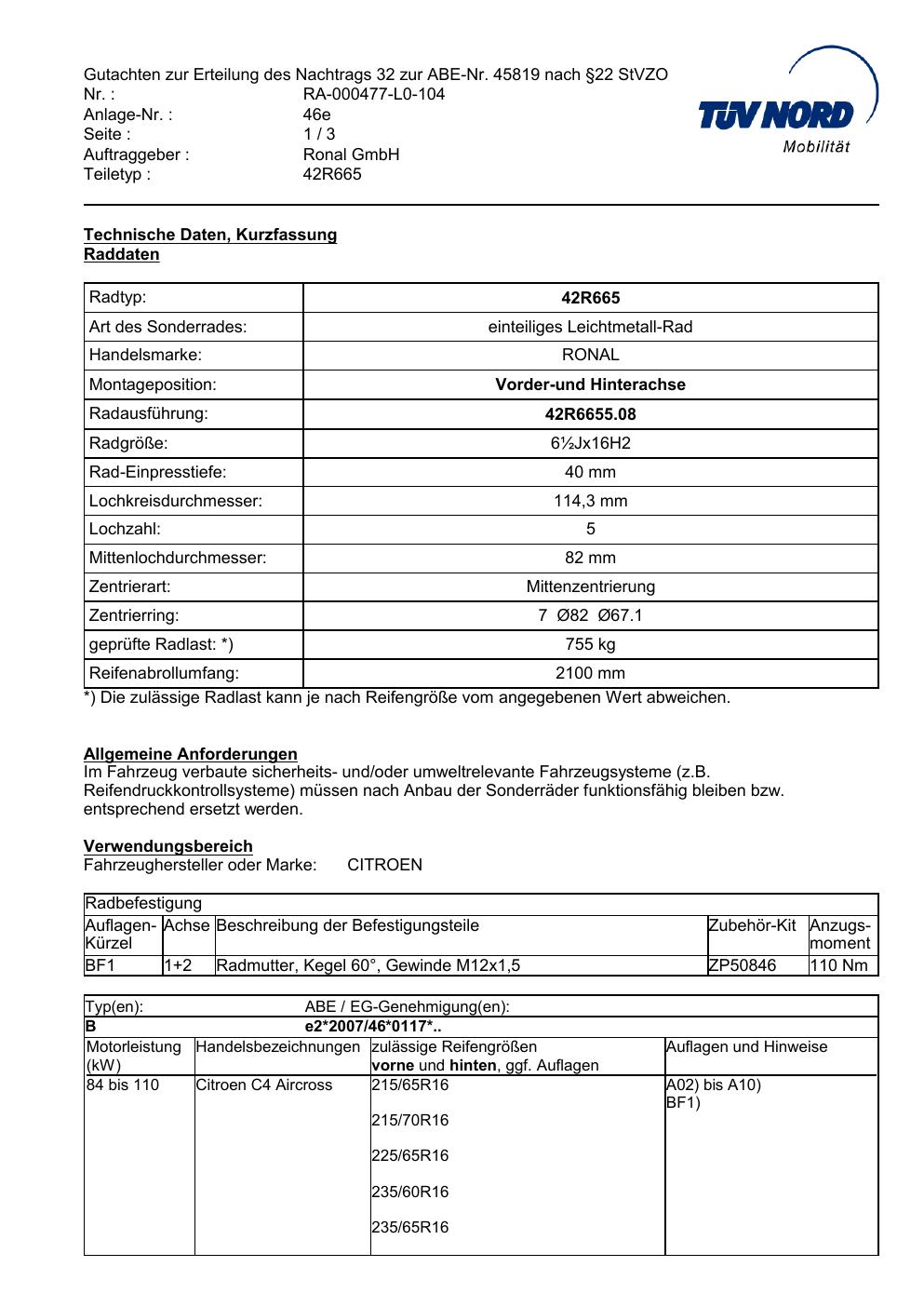 • Stimmt die KBA-Nummer auf der Felge mit diesem Dokument überein?