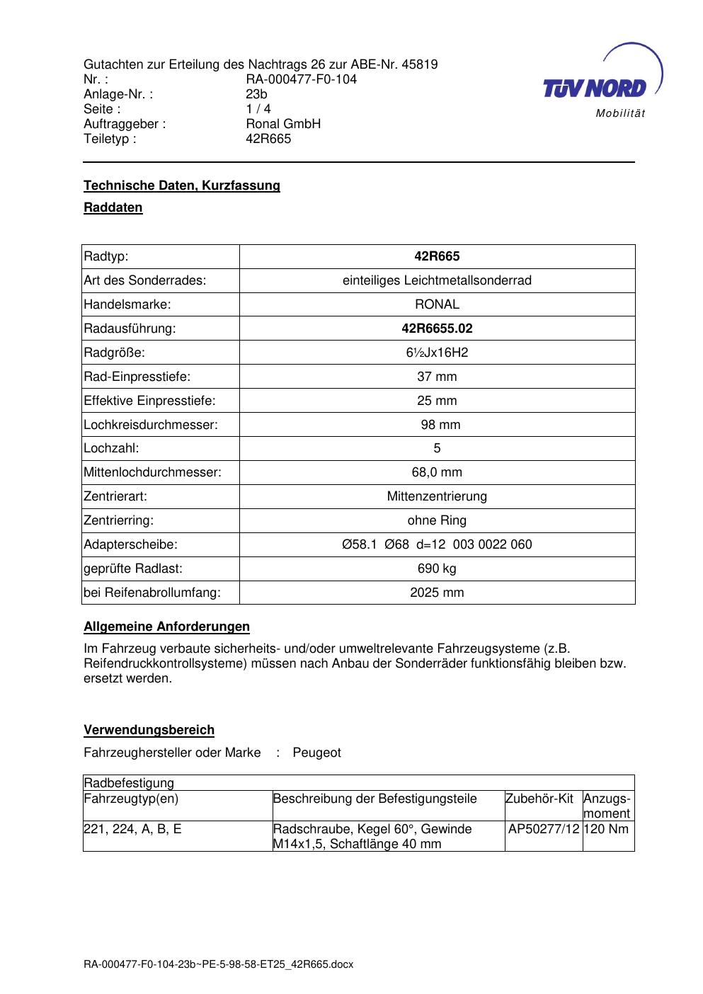 • Stimmt die KBA-Nummer auf der Felge mit diesem Dokument überein?