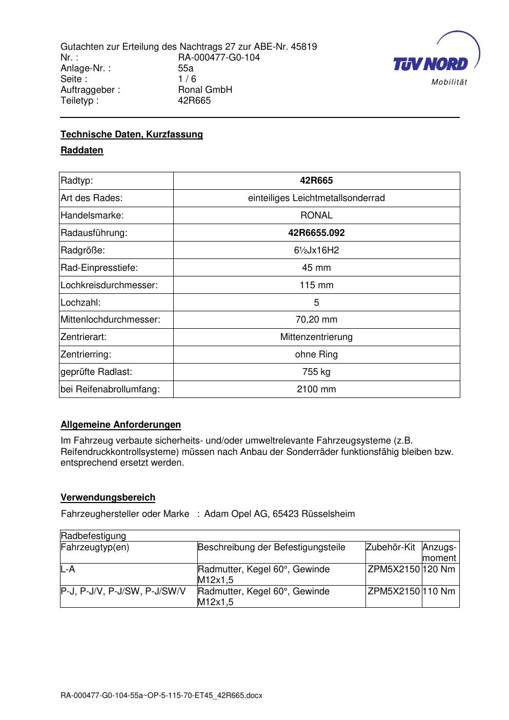 • Stimmt die KBA-Nummer auf der Felge mit diesem Dokument überein?