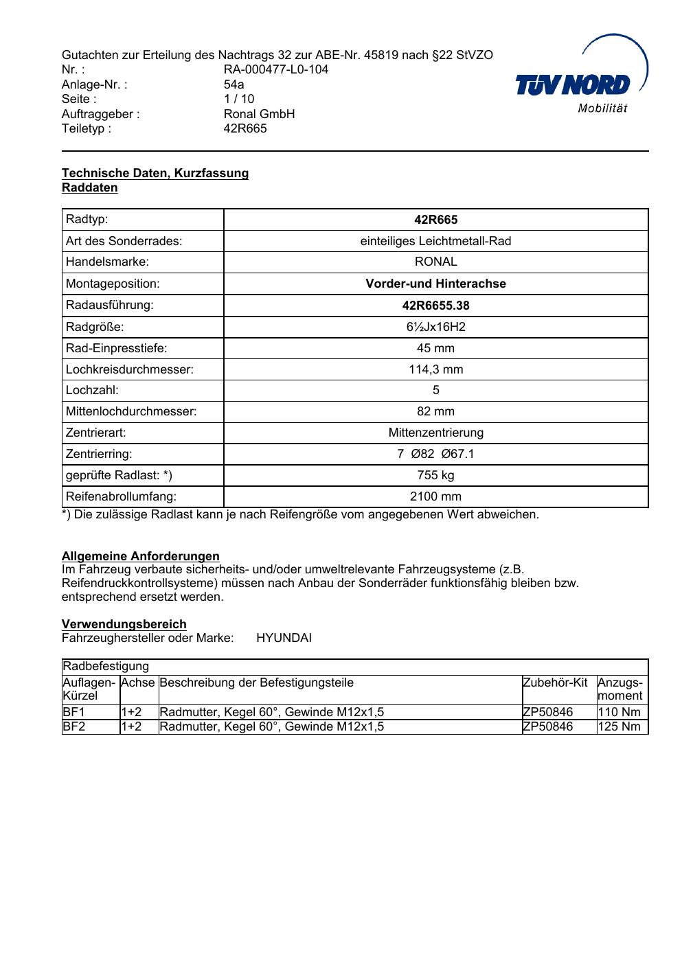 • Stimmt die KBA-Nummer auf der Felge mit diesem Dokument überein?