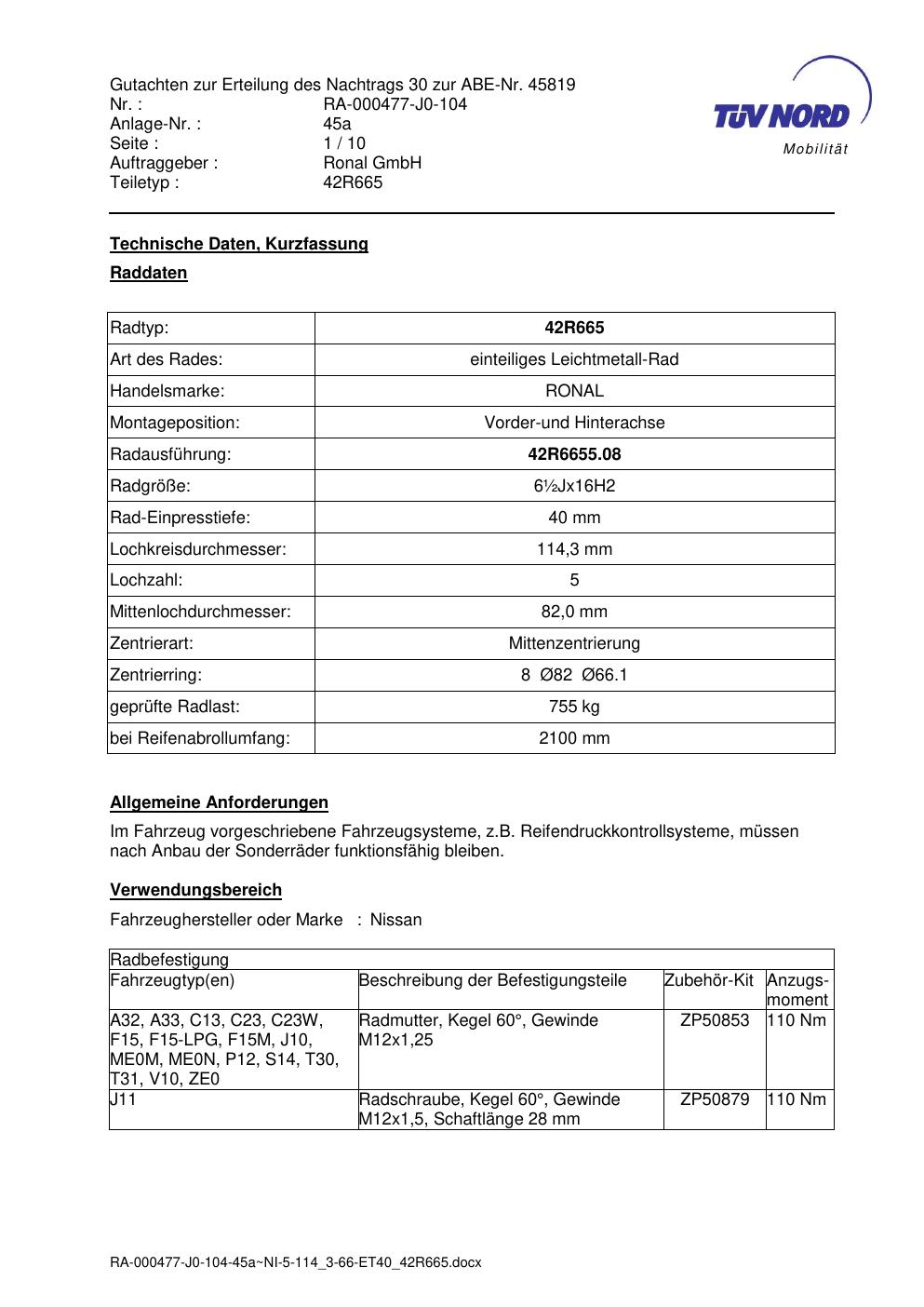 Dieses abe gehört zur Felge Ronal 42R665 in ET0 mit KBA 45819. Die Seite ist dafür gedacht, dass du schnell prüfen kannst, ob KBA, Design und Größe zu deiner Felge passen und danach direkt das richtige PDF lädst.
