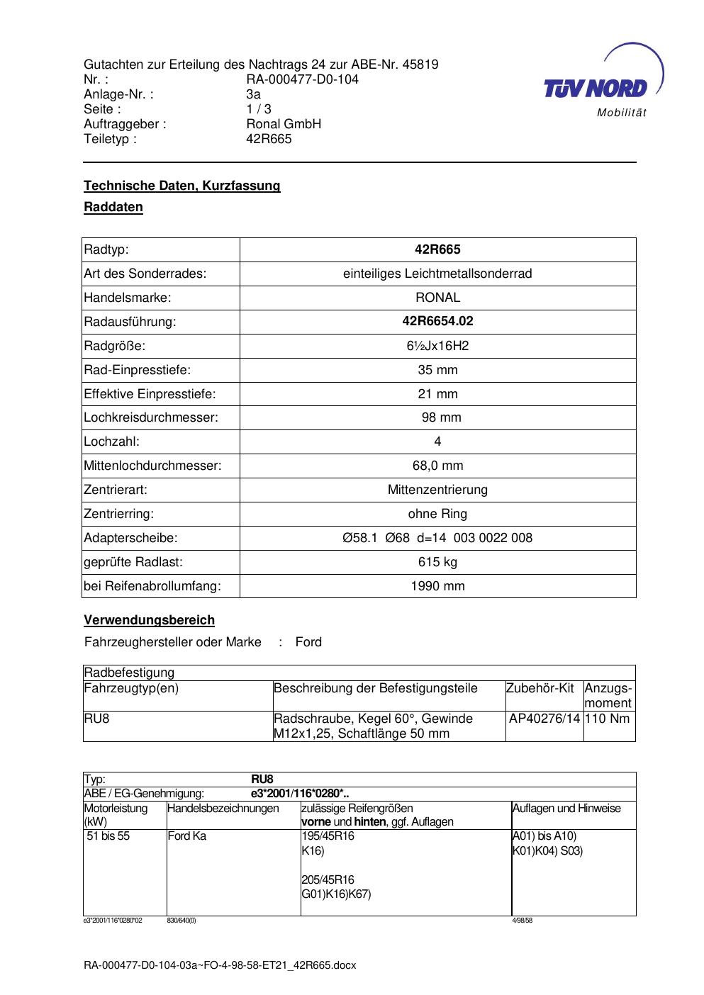 • Stimmt die KBA-Nummer auf der Felge mit diesem Dokument überein?