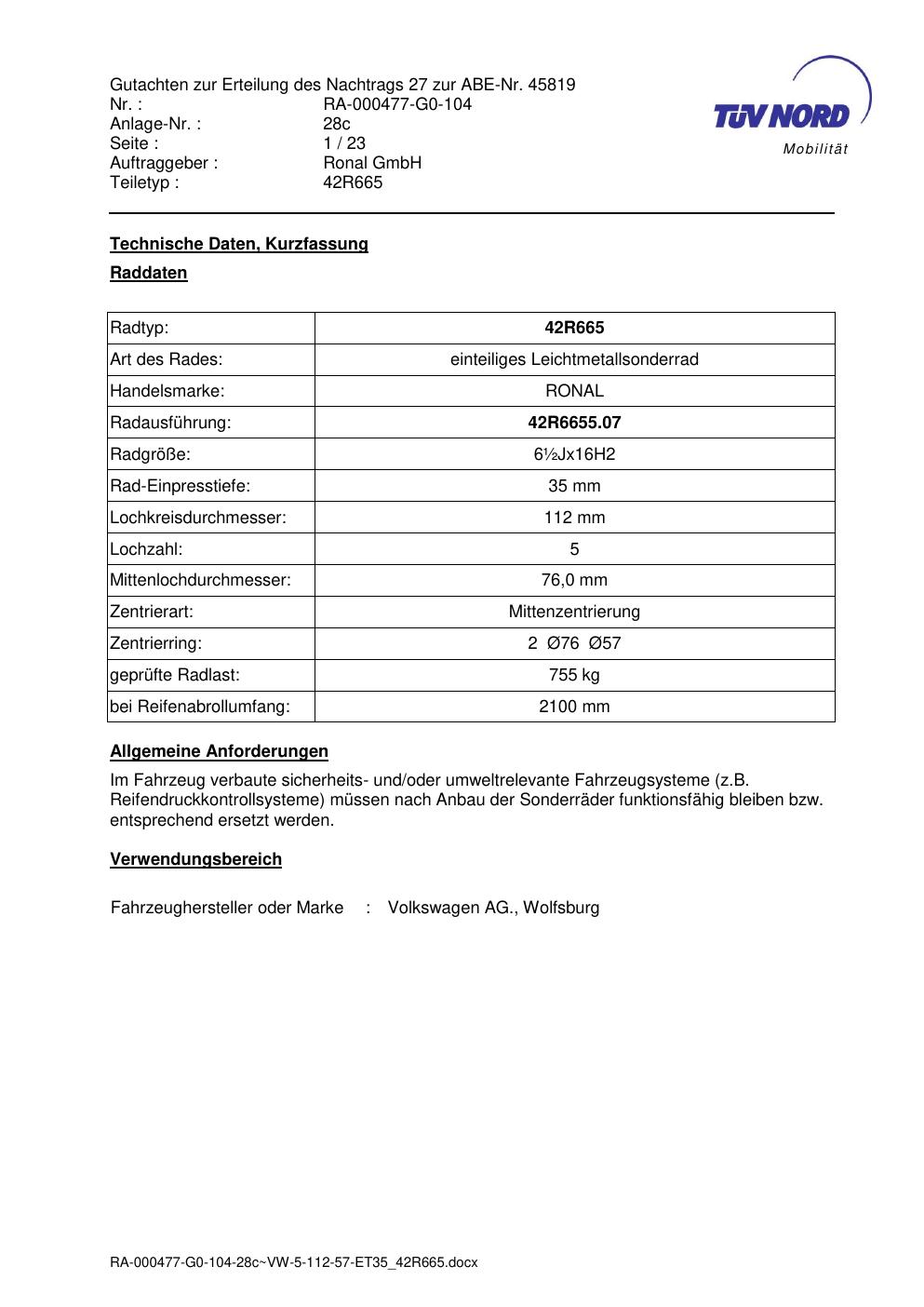 • Stimmt die KBA-Nummer auf der Felge mit diesem Dokument überein?