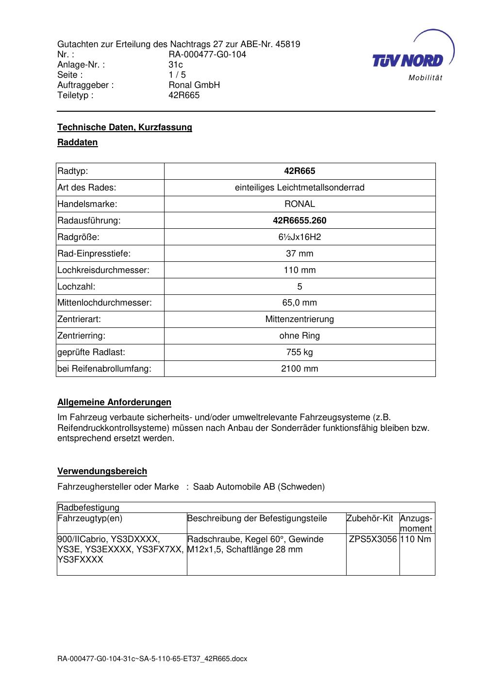 • Stimmt die KBA-Nummer auf der Felge mit diesem Dokument überein?