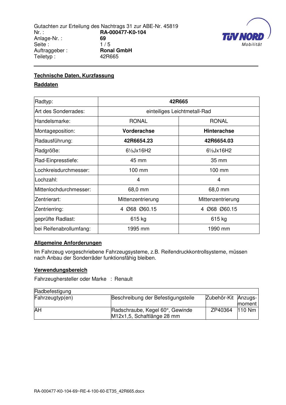 • Stimmt die KBA-Nummer auf der Felge mit diesem Dokument überein?