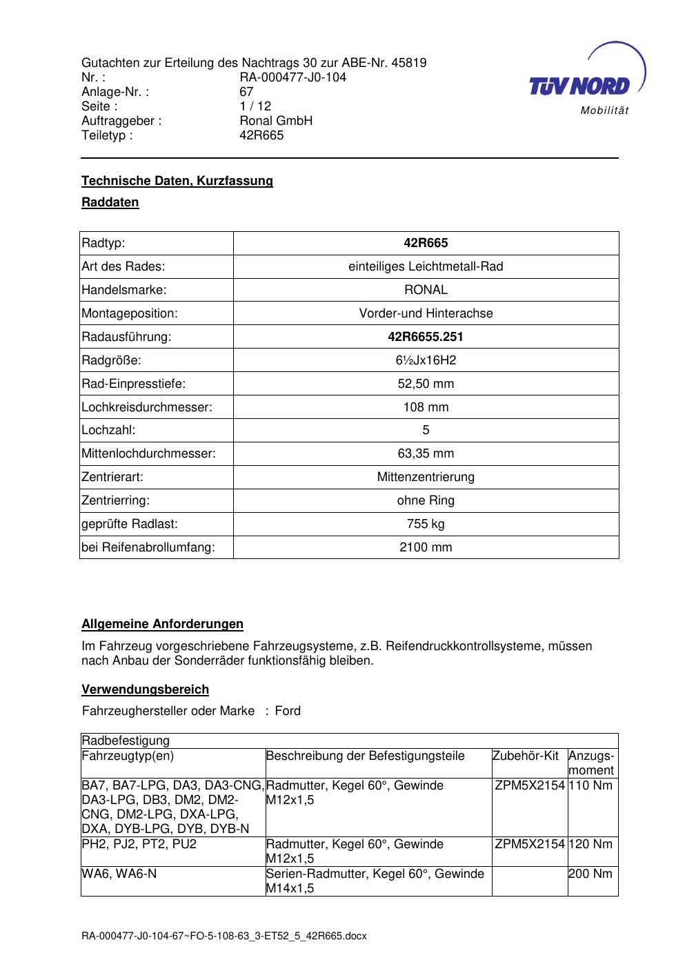 • Stimmt die KBA-Nummer auf der Felge mit diesem Dokument überein?